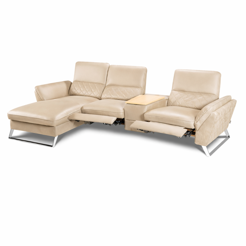 Lorenzo Bespoke Corner Sofa in With Storage and Recliner Beige Leather
