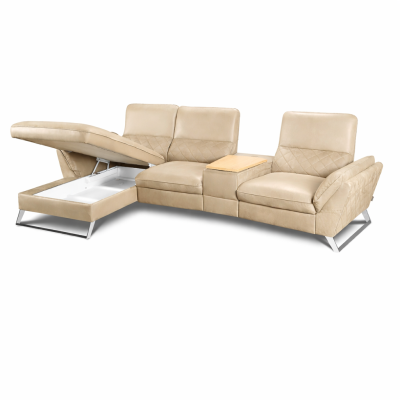 The Lorenzo Bespoke Corner Sofa With Storage, Laptop Table and Recliner, designed and produced by Feniks Meble, is available in genuine Italian leather, including a refined and timeless beige Italian leather option. Beige leather is a popular choice for modern and elegant interiors, adding warmth, brightness, and a luxurious feel while remaining practical and easy to maintain.