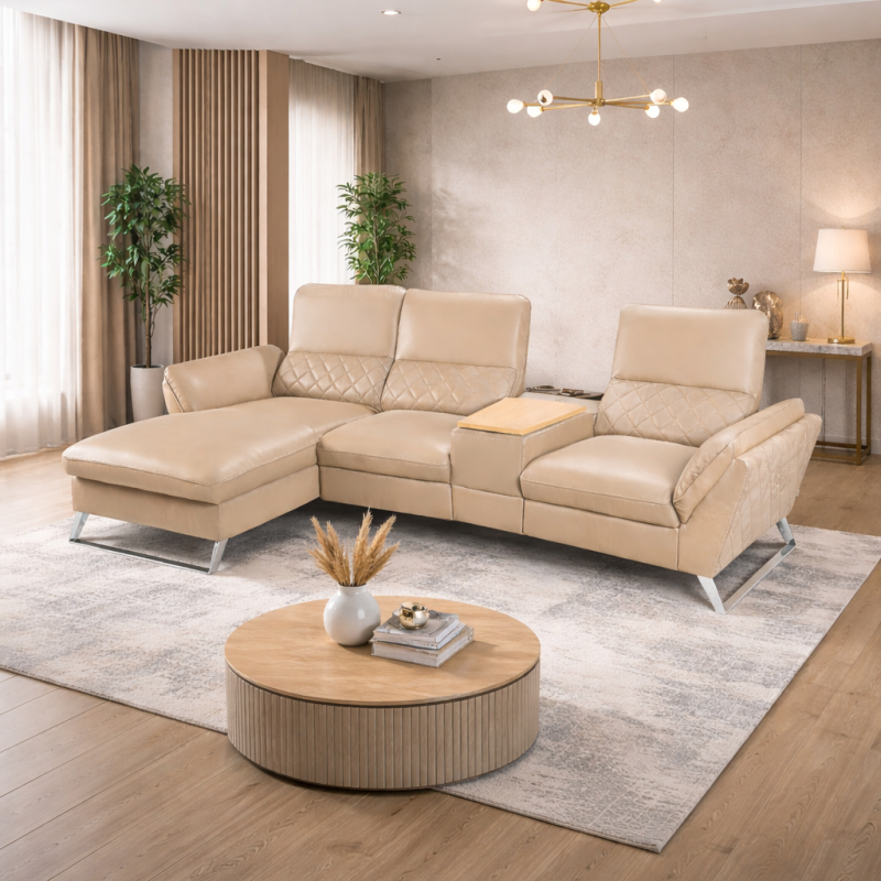 - Colours & Materials: Premium fabrics, eco-leather, and genuine Italian leather, including beige.