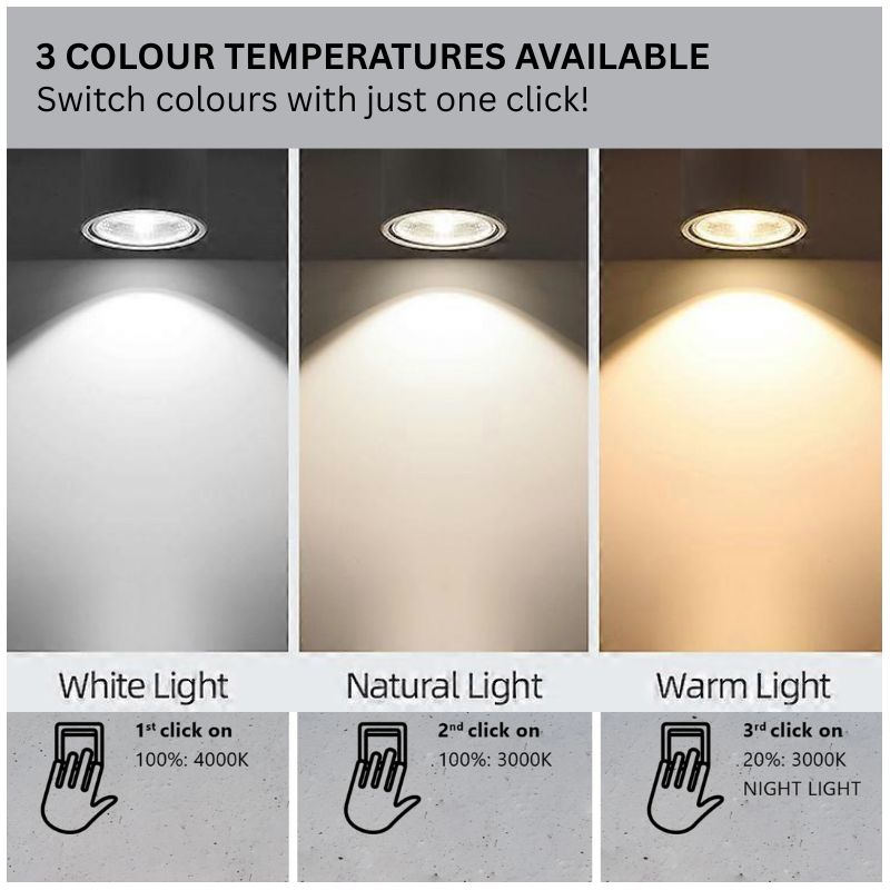 Note: Tree colour temperatures available: White Light, Natural Light, and Warm Light. Switch the colour temperature with just a click.