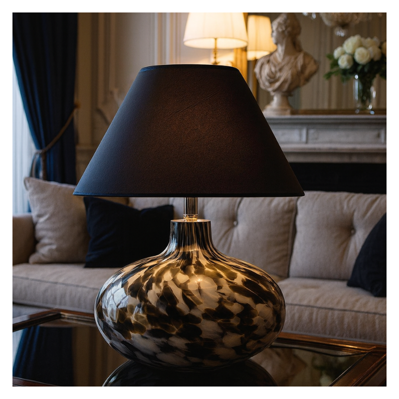 Crafted from premium glass and fabric, the Adana table lamp offers durability and style in one. The carefully considered design guarantees not only a decorative feature but also a functional table lamp that provides reliable lighting for years to come. A perfect example of luxury table lamps in Ireland, it blends practicality with sophistication.