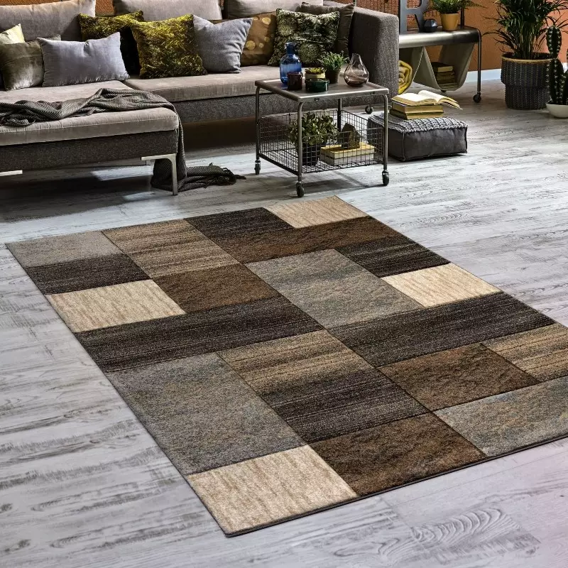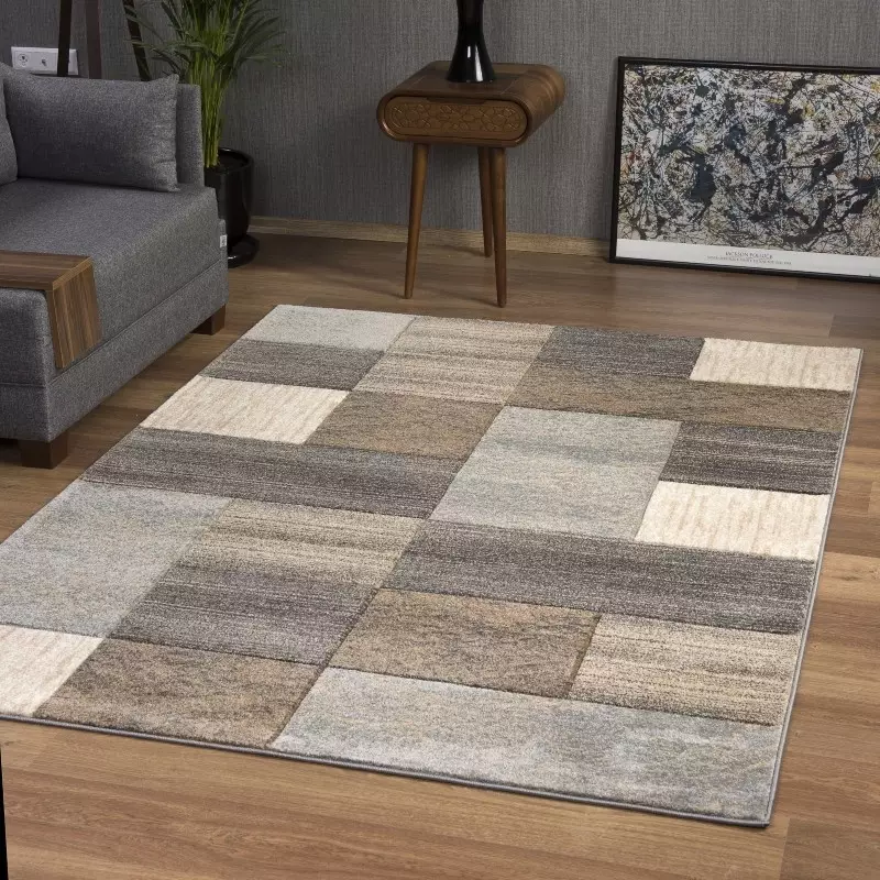 Jasper brown and beige rug really is an eye-catching piece due to its bright and vibrant colours. This modern rug has a stunning square pattern which is contemporary, enriching any living space. This is a 100% polypropylene rug with an 11 mm pile height. The Jasper brown and beige rug has been frize hand carved and is perfect for completing a room.