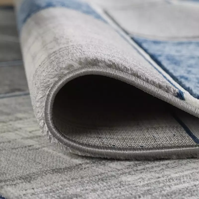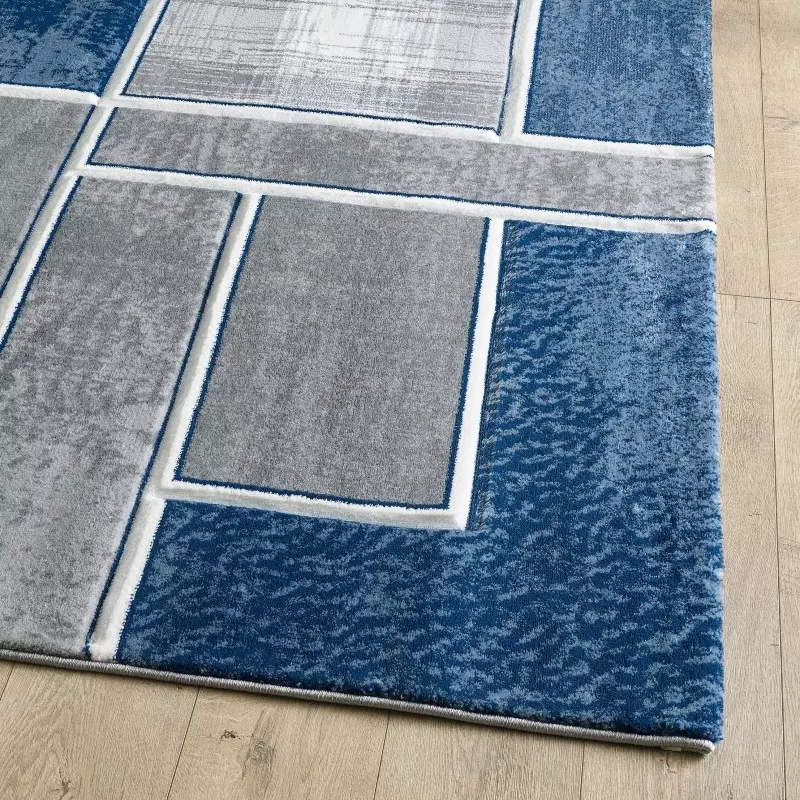 This modern rug has it all, it is soft to the touch, with a high-density pile. The striking colours stand out against a thick border that has been carved throughout the pattern of the rug. The prominent grey & navy tones work together, giving a stylish blend of colours. The Polypropylene fibres used to create this modern rug fashions comfort as well as practicality in the home. Designed to be used in high traffic areas, this rug only needs a light vacuum to be maintained. No detail has been spared in the creation of this modern rug, with folded edges either end, this rug has a class of sophistication that will enhance any living area.