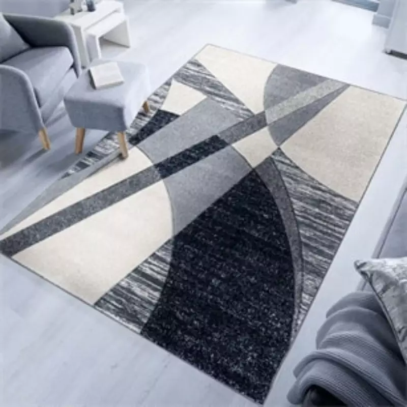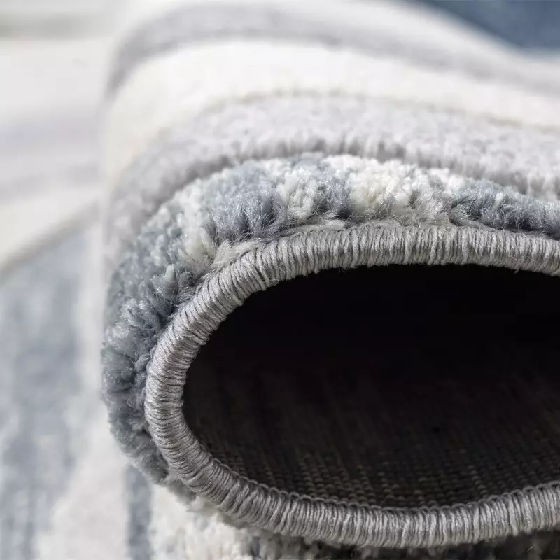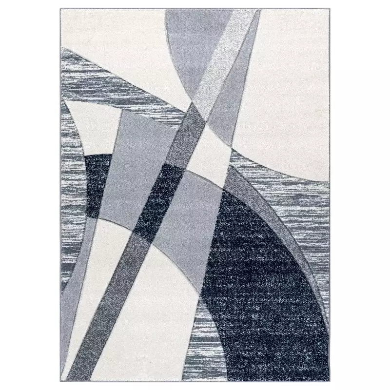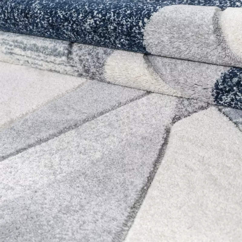 Add a touch of luxury to your home with this statement piece rug. The fibre has been weaved between the design, giving depth and further texture to the rug. The abstract style and simple colours allow this rug to blend seamlessly into contemporary living environments. The Polypropylene fibres used to create this rug fashions comfort as well as practicality in the home, as this rug is soft to the touch. The navy and grey tones have been blended together against cream giving a prominent blend of modern colours that will match a variety of coloured or simple rooms.