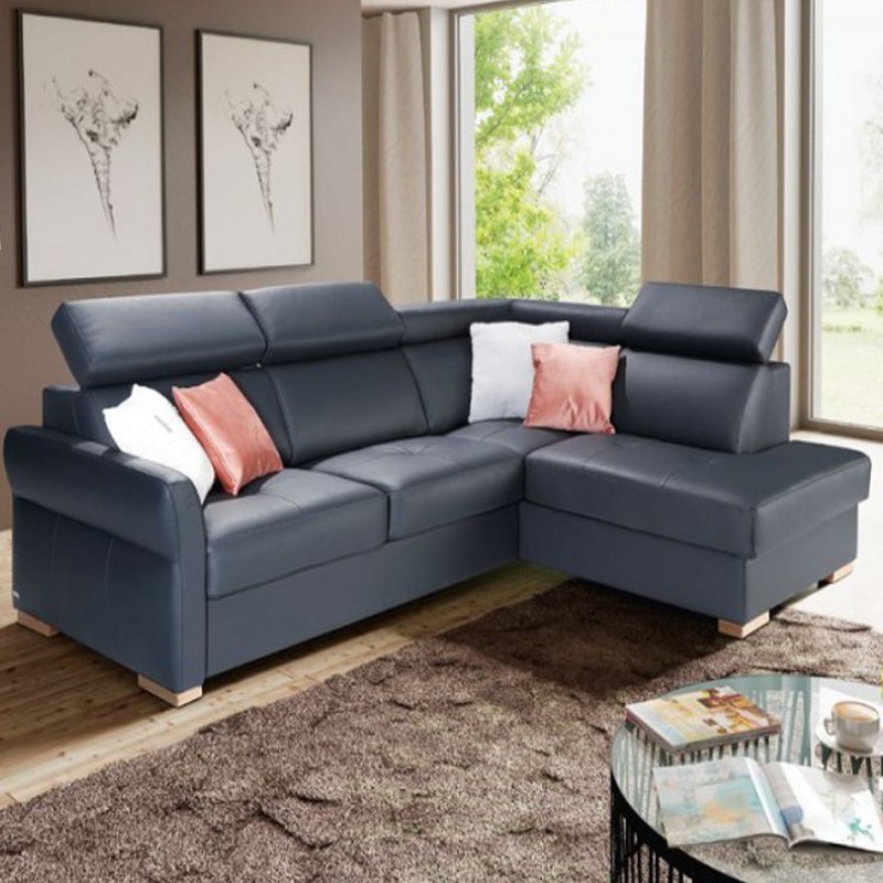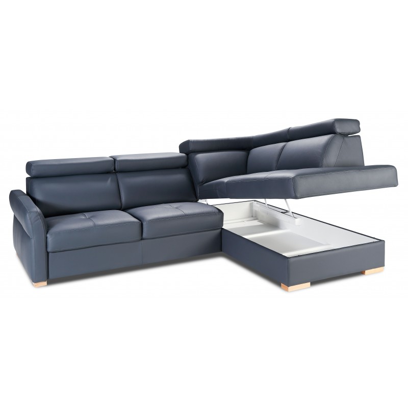 Baggio Corner Sofa Bed in Navy Italian Leather