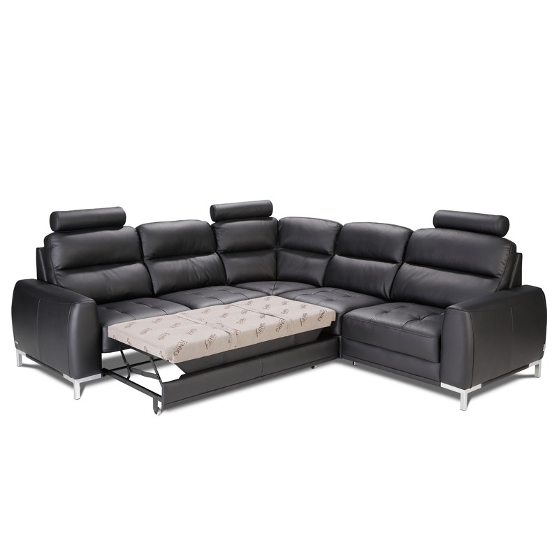 Lino Bespoke Corner Sofa Bed in Black Leather