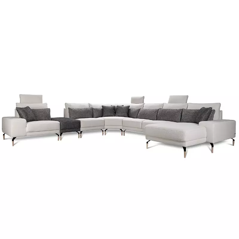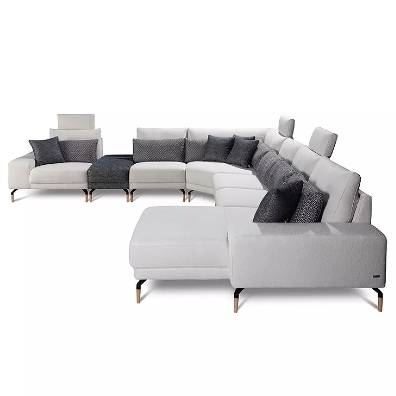 The Sicilia Modular Sofa is the ideal solution for spacious living rooms in modern Irish homes. Designed with comfort and customization in mind, it features a comfortable backrest with a headrest for optimal support and an armrest for relaxed seating. Personalize your sofa to fit your unique style and space requirements.