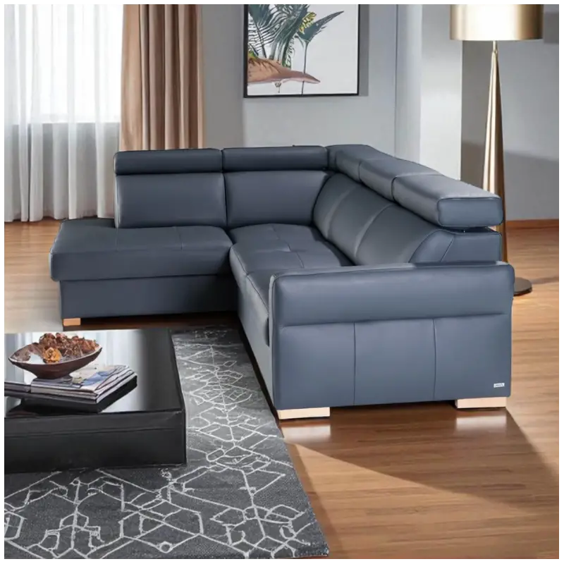 As one of our most popular models at our Furniture Shop in Limerick, the Baggio Corner Sofa Bed in Navy Italian Leather not only enhances your living space aesthetically, but also delivers exceptional convenience with its integrated features, premium materials and smart space-saving solutions.