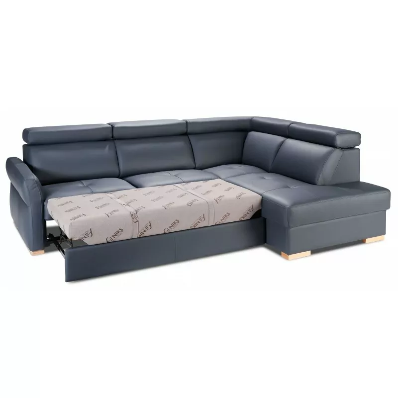 Baggio Corner Sofa Bed in Navy Italian Leather