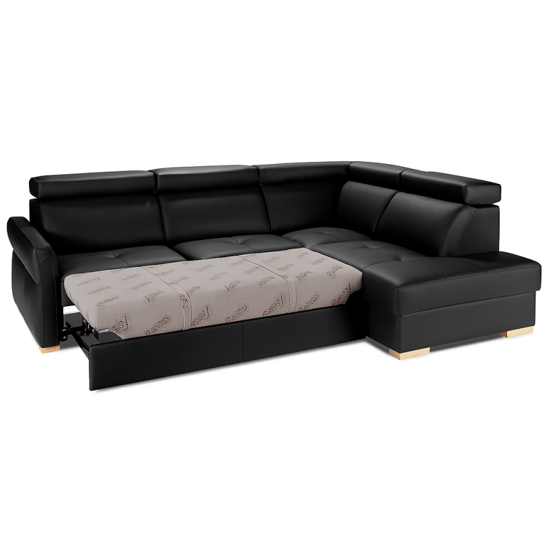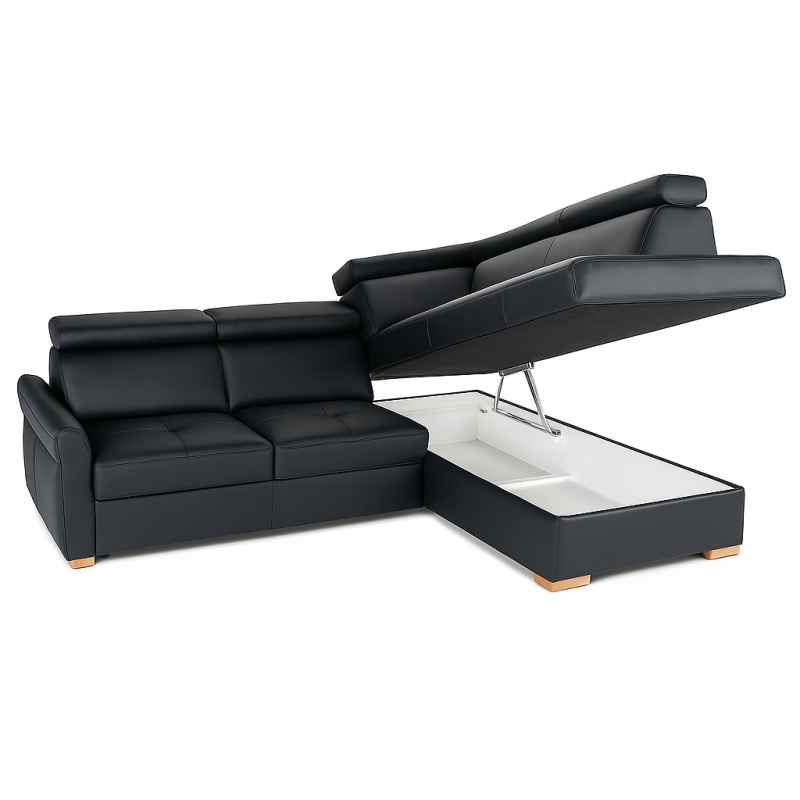 Baggio Custom Corner Sofa Bed and Storage – Black Italian Leather