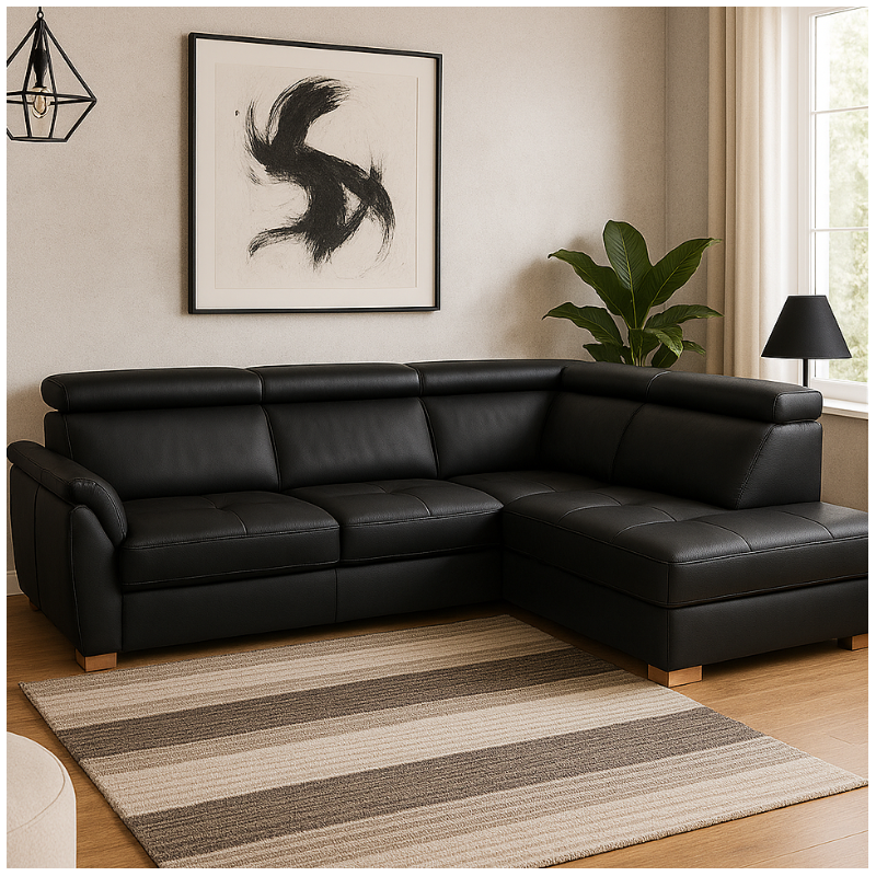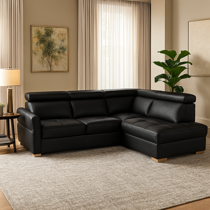 The Baggio Corner Sofa Bed in Black Italian Leather is the perfect blend of comfort, functionality and bespoke design. Ideal for homeowners searching for a stylish and fully customisable corner sofa bed, this model is a standout choice for those seeking premium sofas Ireland. With custom sizing options, multiple features and hidden storage, the Baggio adapts beautifully to your home and lifestyle.