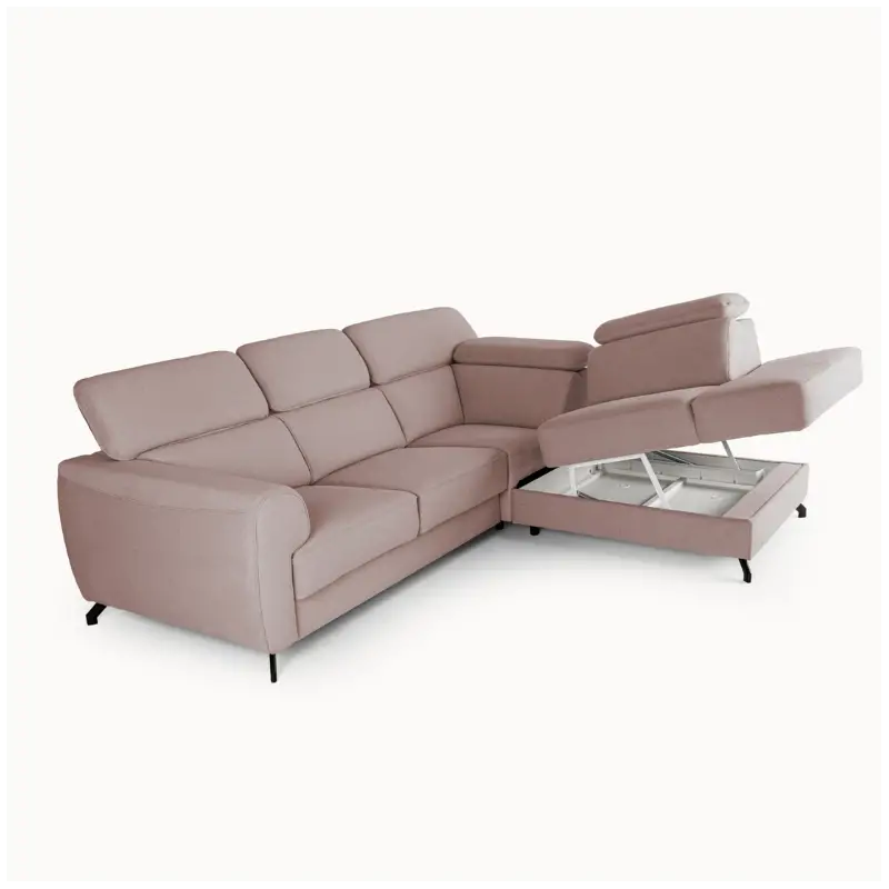 Chenille Pink upholstery is a popular choice for this corner sofa bed. We offer a wide variety of pink tones, from soft blush to deeper dusty rose shades, available in both fabric and leather options.
