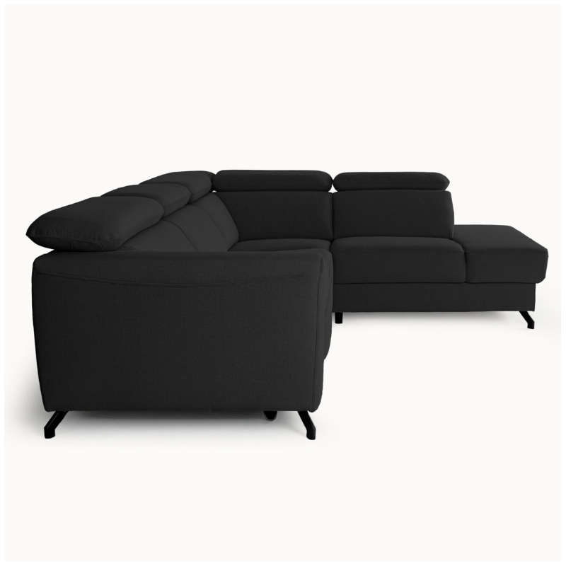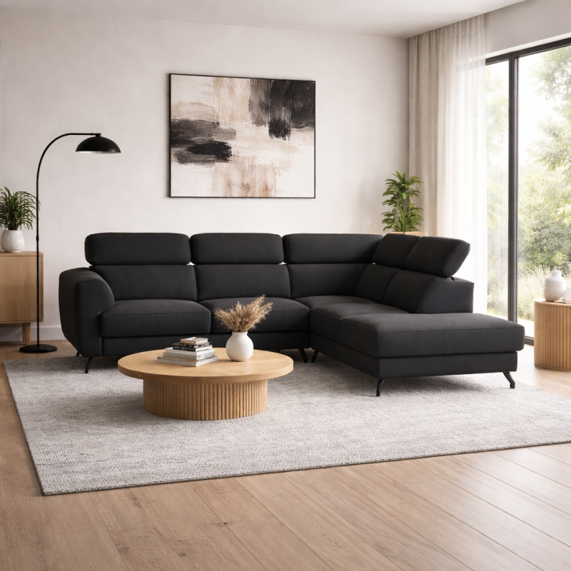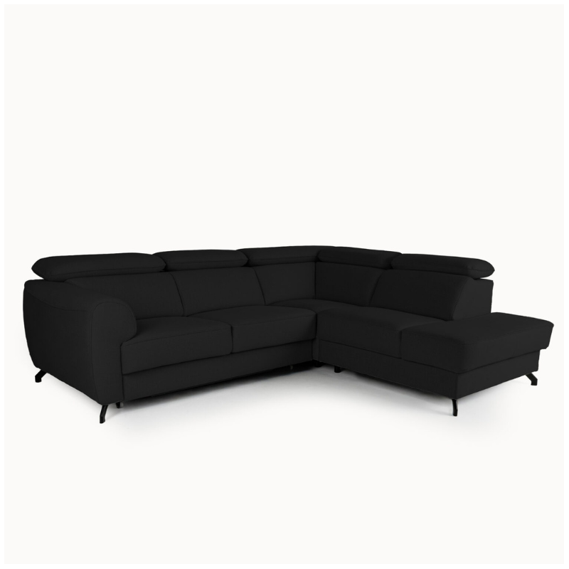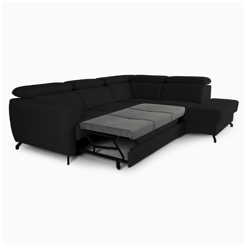 Black upholstery is a timeless and versatile choice for this corner sofa bed. Available in multiple fabric textures and leather finishes, black works perfectly in modern, minimalist, industrial, and luxury interiors.