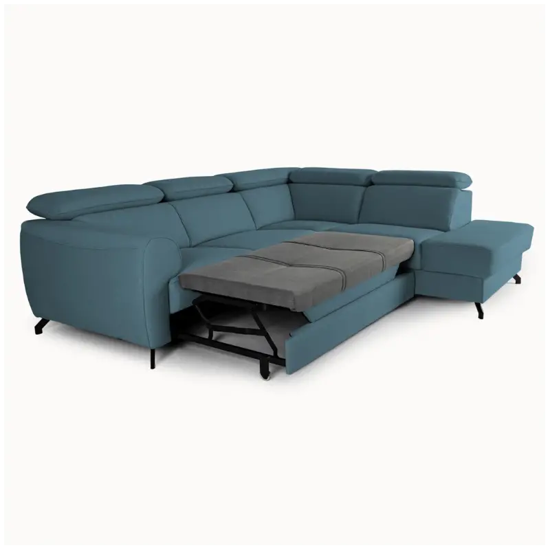 Compass Corner Sofa Bed in Teal Blue – Modern Comfort, Custom Design & Hidden Storage