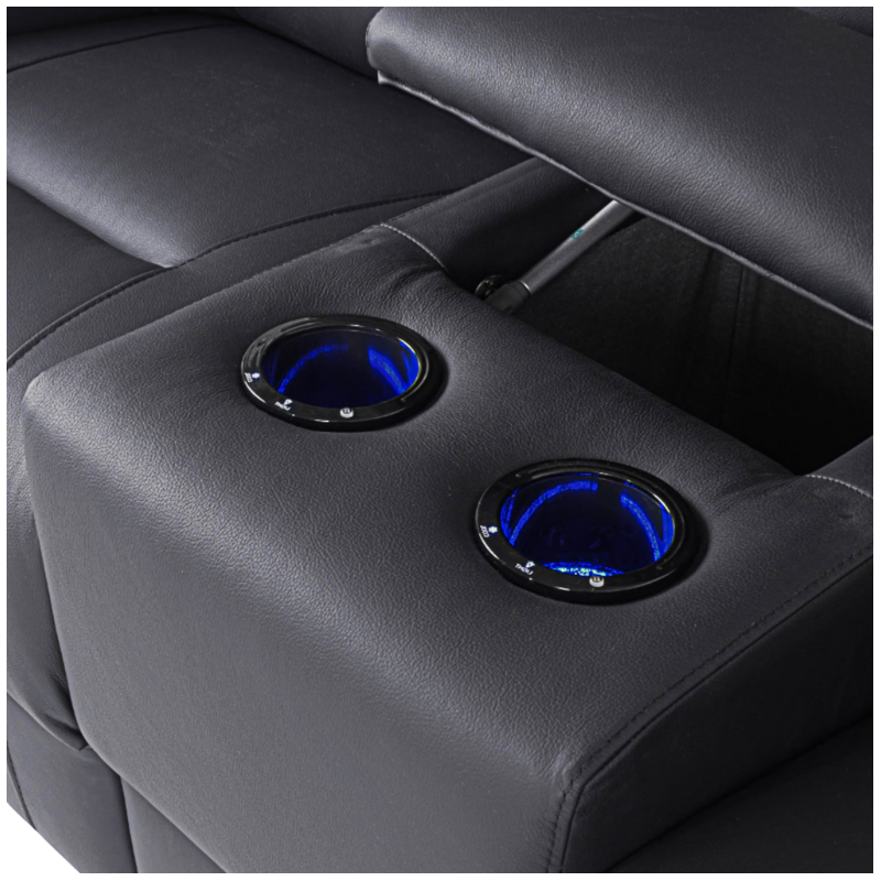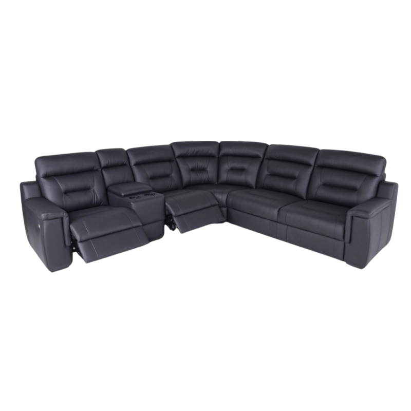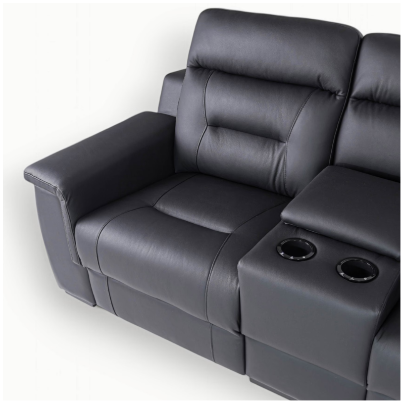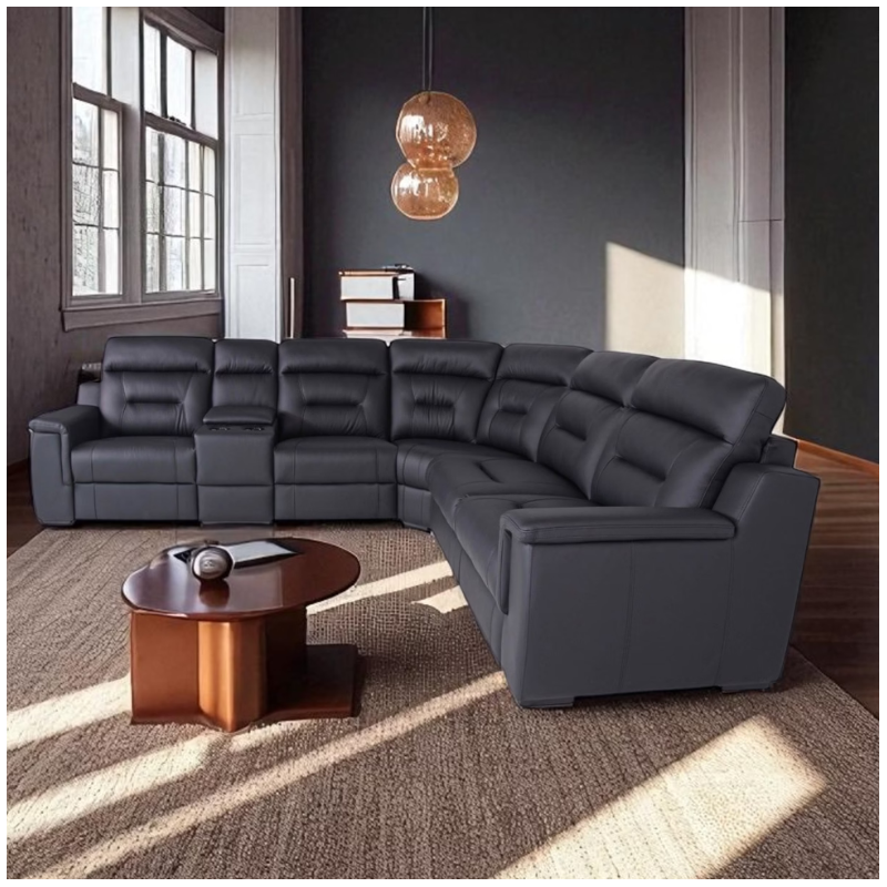 Corner Sofa Bed with Two Electric Recliners and Cooler – Black Hermes Leather | Bespoke Sofas Ireland