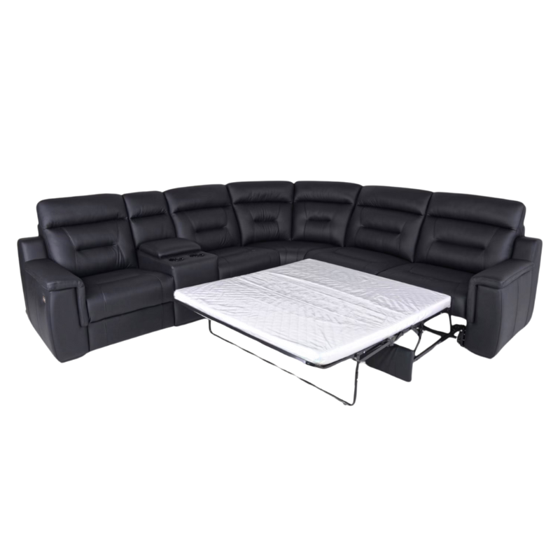 Motion Corner Sofa Bed with Recliner – Black Italian Leather
