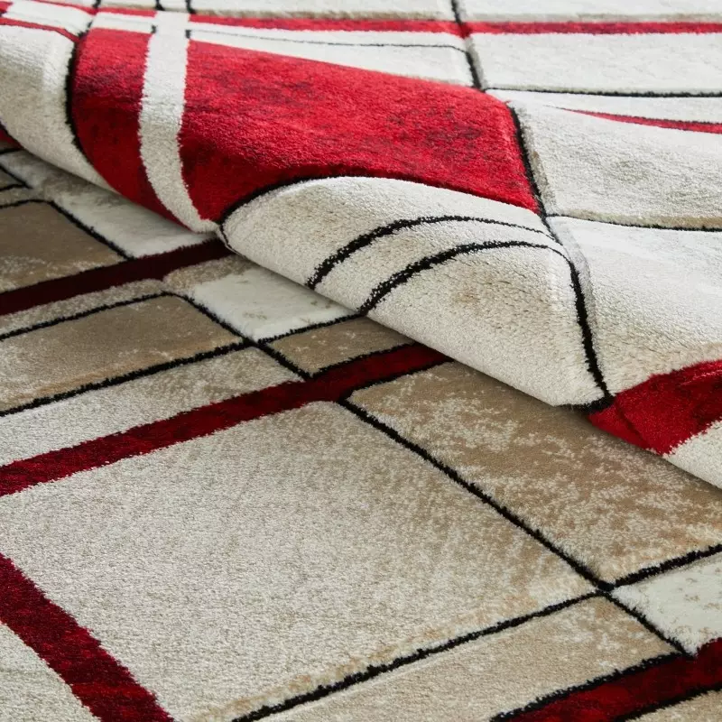 Accra Rug Cream & Red – Modern Rug for Living Room
