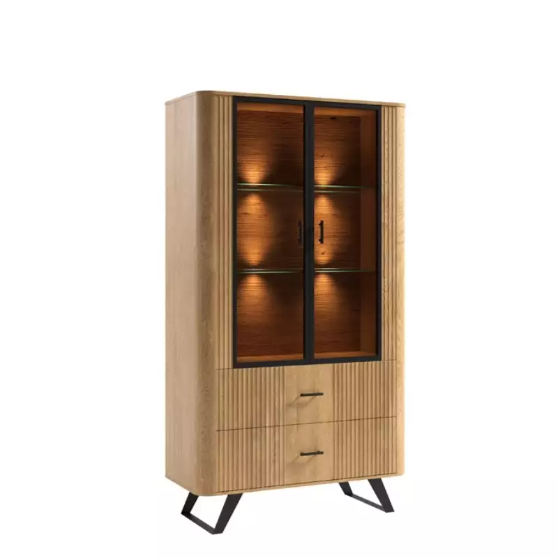 Santos Display Cabinet in Oak – 2-Door 2-Drawer Modern Design
