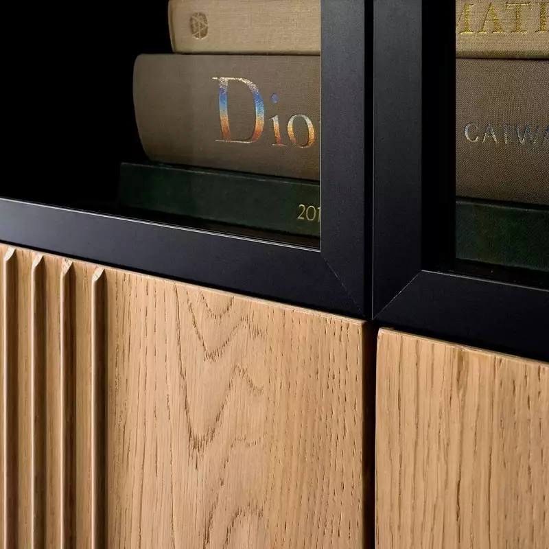 The natural oak tones of this display cabinet in oak bring warmth and sophistication to any living room, dining area, or hallway. Designed to complement other furniture in the Santos collection, it blends seamlessly with both contemporary and classic interiors, creating a warm and welcoming atmosphere.