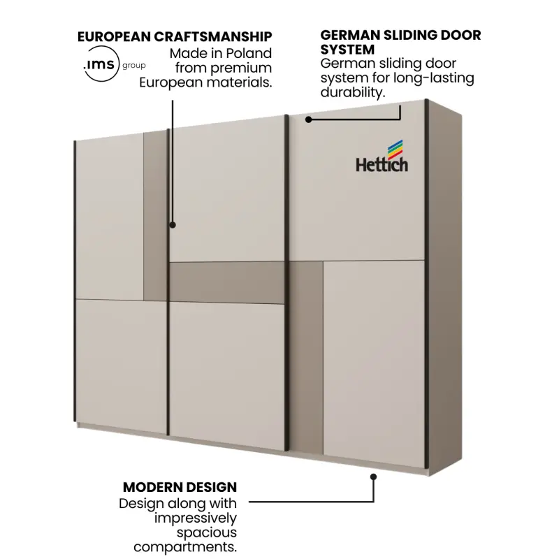 Cube Sliding Wardrobe 270CM – Cashmere | Modern Sliding Wardrobe Ireland