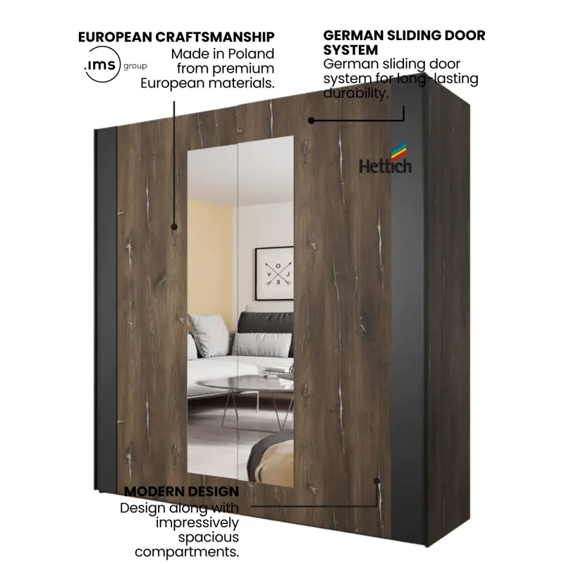 Sigma 200cm Sliding Wardrobe with Mirror dark Oak and Black