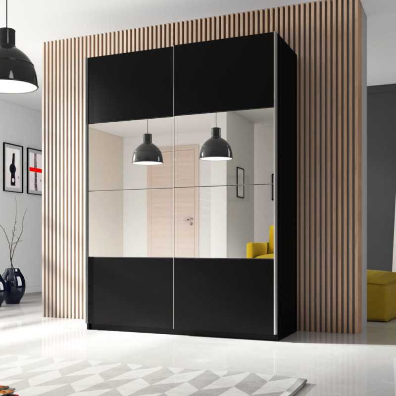 Beta 150cm Modern Sliding Door Wardrobe With Mirror in Black
