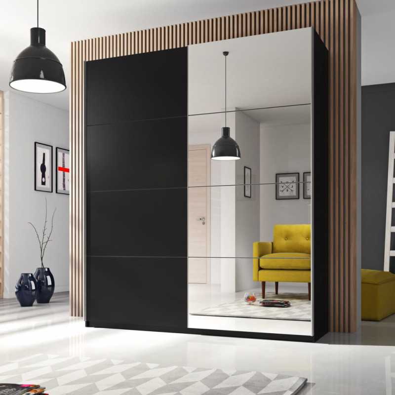 Beta 180cm Sliding Door Wardrobe With Mirror - Colour Black