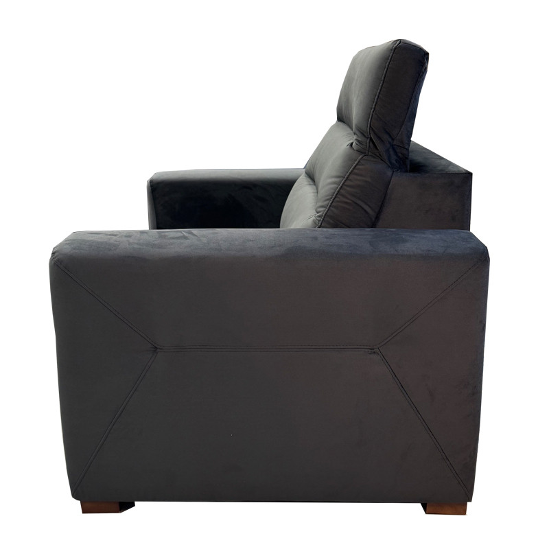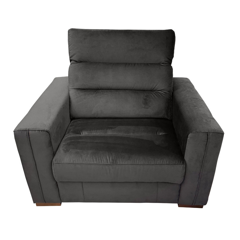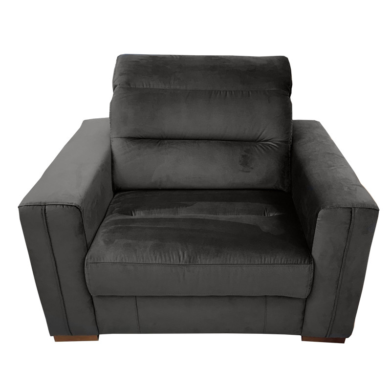 The Excellence Armchair, upholstered in dark grey Napoli 20 velvet fabric, is part of the Excellence Modular Sofa Range. This armchair combines stunning contemporary design with exceptional functionality, making it a standout piece among armchairs for any living room. Its adjustable headrest ensures maximum relaxation, while the high-performance fabric offers durability and style for a premium armchair experience.
