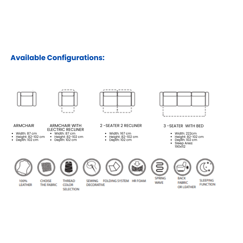 - Premium upholstery and genuine leather options