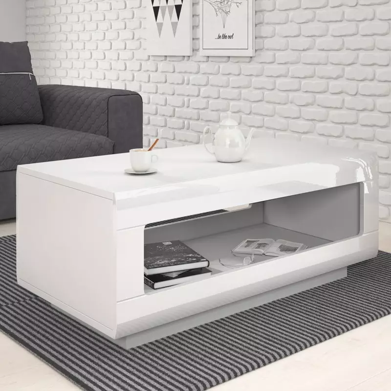 The stylish Tulla Coffee Table offers two stunning finishes: High White Gloss and Grandson Oak. This well-crafted European furniture is coated with a durable membrane, ensuring your coffee table remains beautiful for years. The Tulla Coffee Table features a spacious surface measuring 110cm by 60cm and includes a convenient under-storage area for added functionality.