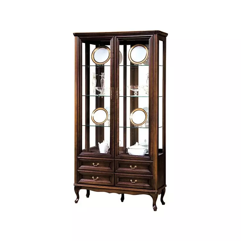 Wersal Glass Display Cabinet – 2-Door 4-Drawer Luxury Tall Cabinet