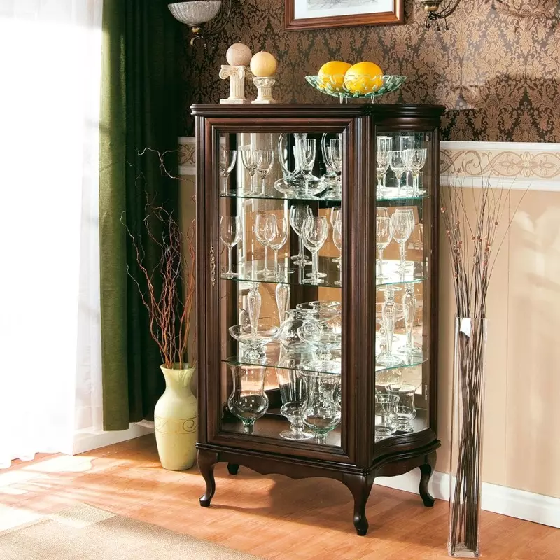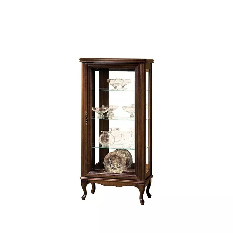Part of the exclusive Wersal furniture collection, this glass display cabinet is easily recognised by its unique square proportions and refined craftsmanship. Its mirrored back enhances light and depth, creating a brighter display for ornaments, glassware, or collectibles. The elegant detailing and dark wood finish make it a perfect fit for both traditional and modern interiors.