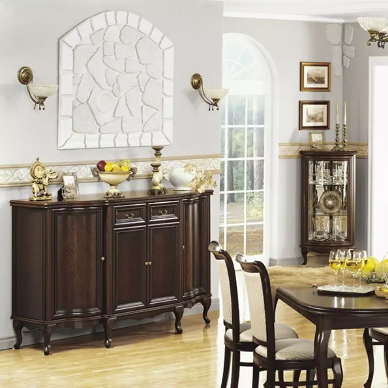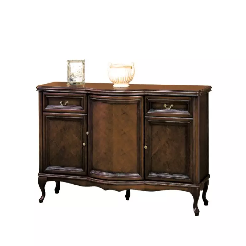 This beautiful sideboard is part of the luxurious Wersal collection, designed to bring refined sophistication to your home. With its elegant curved silhouette, ornate brass handles, and rich dark heartwood wedge finish, this timeless sideboard cabinet adds warmth and character to any living or dining space.