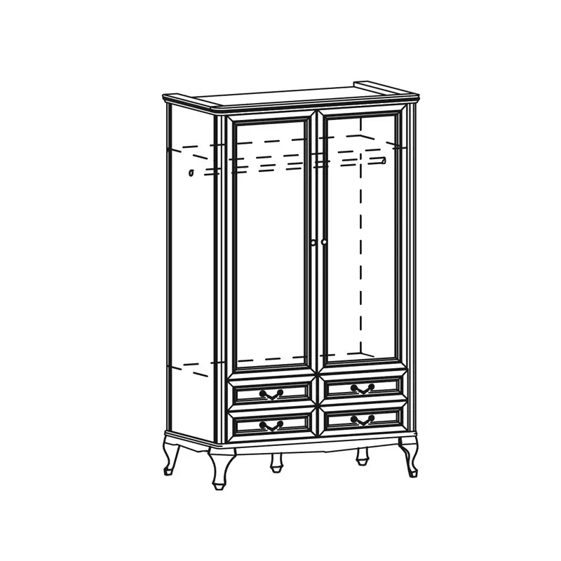 Looking for a wardrobe in Ireland? We provide a wide selection of high-quality wardrobes, including wardrobe for corner solutions, practical wardrobe and drawer combinations, and sleek sliding door designs. Our wardrobes are made to maximize storage and enhance your living space. The Wersal wood wardrobe exemplifies timeless craftsmanship and classic elegance. Made from high-quality solid wood with a beautiful wenge finish, this wardrobe adds warmth and sophistication to any bedroom. Featuring gracefully curved doors, ornate brass handles, and full-length mirrors, the Wersal blends traditional design with functional storage. Its sturdy construction ensures durability, while the spacious interior provides ample room for clothes and accessories.
